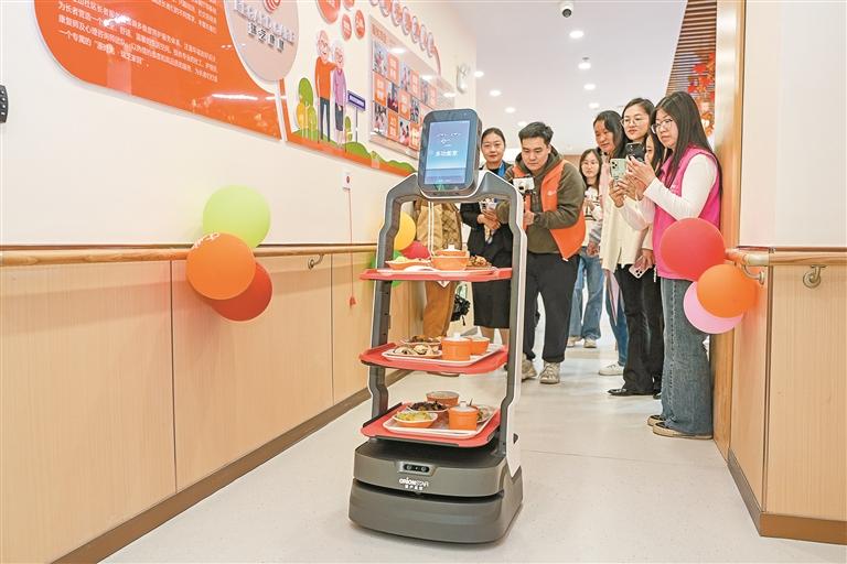 龙华新闻讯(记者 王雪敏 通讯员 韩晓宇/文 记者 蔡维泽/图)嘀的一声“刷脸吃饭”、智能机器人穿梭其间、AI巡查食安监管……3月5日上午,龙华区民治街道红山社区长者服务站暨长者饭堂(社区食堂)正式揭牌运营。家住水榭春天小区的熊阿姨和牛叔叔成为饭堂的首批体验者。他们接过餐盘,在智慧化系统的引导下,轻松完成“刷脸吃饭”的全流程。上午11点多,饭堂内已经基本“满员”,前来“尝鲜”的居民纷纷为这一家门口的福利点赞。