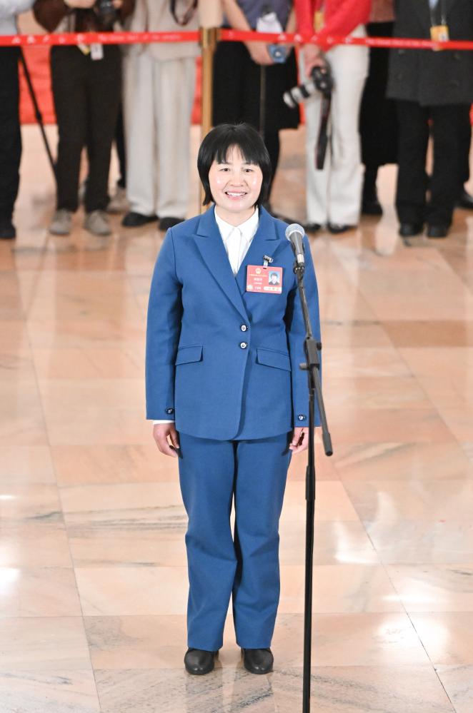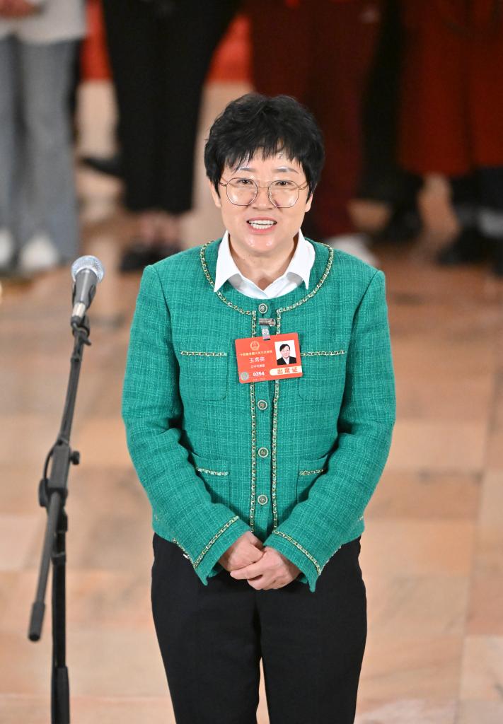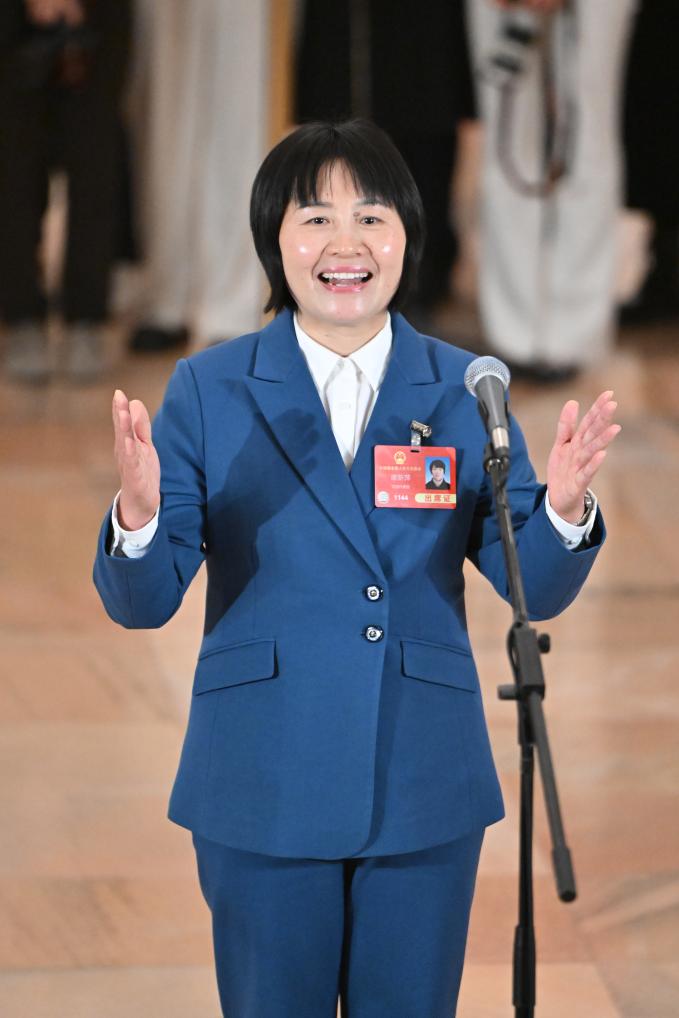 3月11日,第十四届全国人民代表大会第三次会议第三场“代表通道”集中采访活动在北京人民大会堂举行。这是全国人大代表王秀英接受媒体采访。