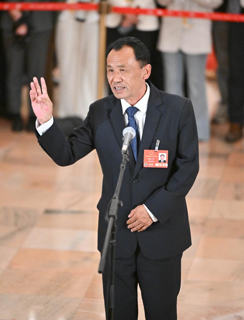 3月11日,第十四届全国人民代表大会第三次会议第三场“代表通道”集中采访活动在北京人民大会堂举行。这是全国人大代表赵昭接受媒体采访。