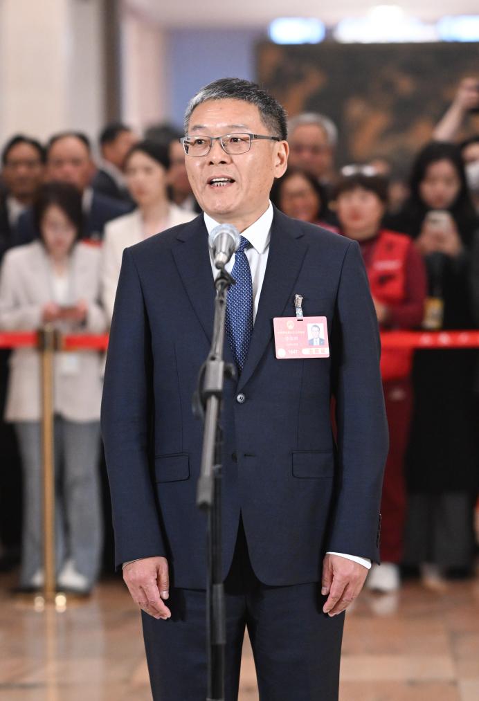 3月11日,第十四届全国人民代表大会第三次会议第三场“代表通道”集中采访活动在北京人民大会堂举行。这是全国人大代表李东林接受媒体采访。