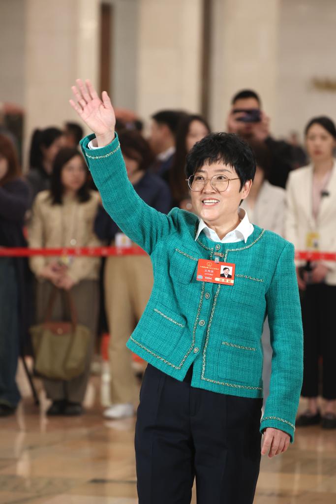 3月11日,第十四届全国人民代表大会第三次会议第三场“代表通道”集中采访活动在北京人民大会堂举行。这是全国人大代表王秀英入场。