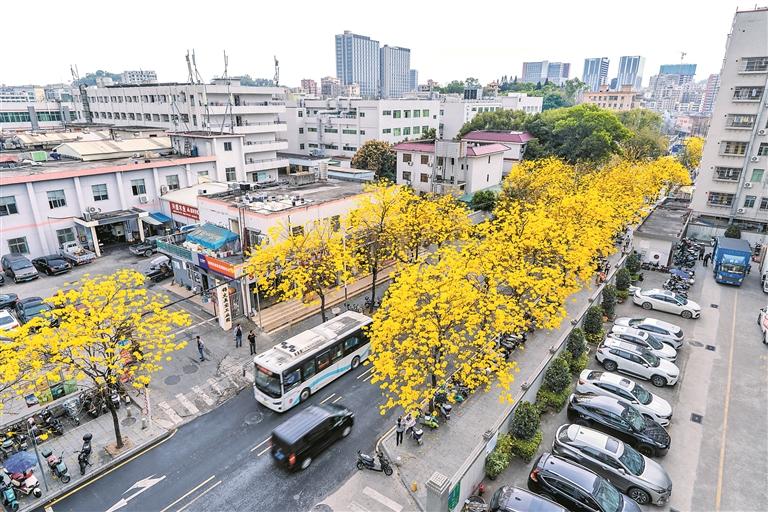 大浪街道美宝路凭借黄花风铃木惊艳出圈。