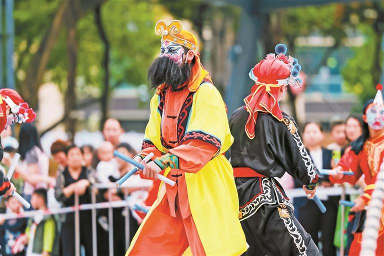 当天,英歌舞的团旗上还打出了“有意思”“有商机”“有得住”“有品质”旗号,恰好与横岗街道打造“四有”特色街区相呼应。