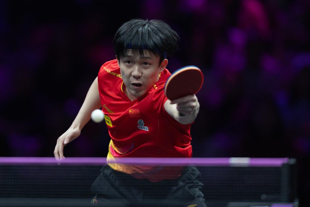 3月16日,王楚钦在比赛中回球。新华社记者 黄伟 摄