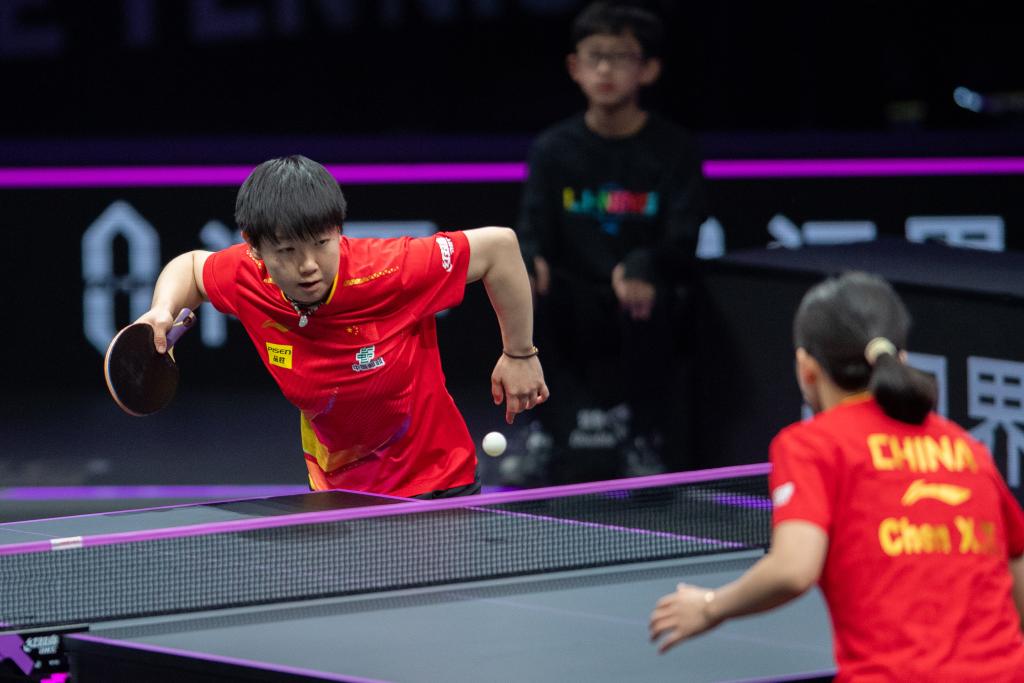 女单决赛中,世界排名第一的孙颖莎以11:7、11:4、12:10、11:7击败队友陈幸同,成功卫冕。本场比赛,孙颖莎状态火热,在发球、进攻和相持等方面的表现都更胜一筹,始终掌握场上主动。