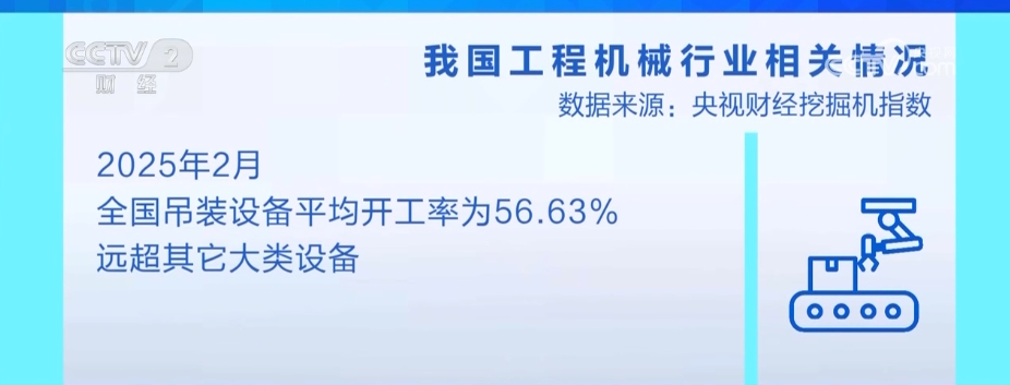 从具体设备来看,2月份,全国吊装设备平均开工率为56.63%,远超其他大类设备。吊装设备常用于大型设备安装、结构吊装等环节,其开工率高反映出2025年开局阶段,多地重大基建项目加速启动。