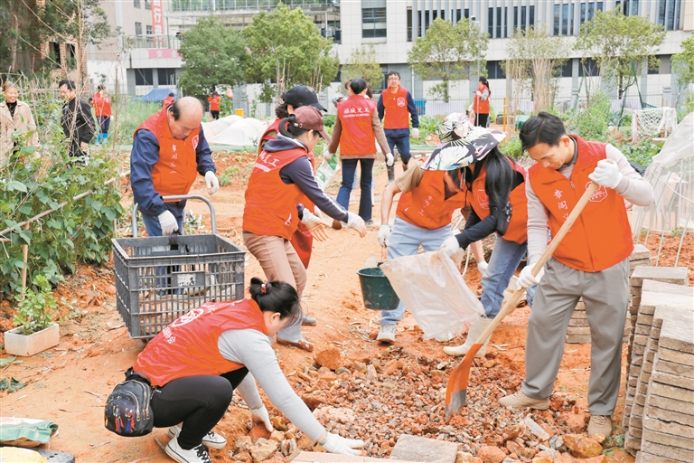 龙华新闻讯(记者 黄晓华 通讯员 汪芬/文 记者 陈建华/图)3月16日早8点,福城街道章阁社区爱心农场内已是一派热火朝天的景象。40余名志愿者与37户种植户代表齐聚一堂,通过“议事+实践”双轨模式,开展一场别开生面的环境提升志愿服务,不仅推动农场设施升级,更激发居民自治活力,实现“家园焕新”与“人心凝聚”的双向奔赴。议事协商,从“提问题”到“定方案”。