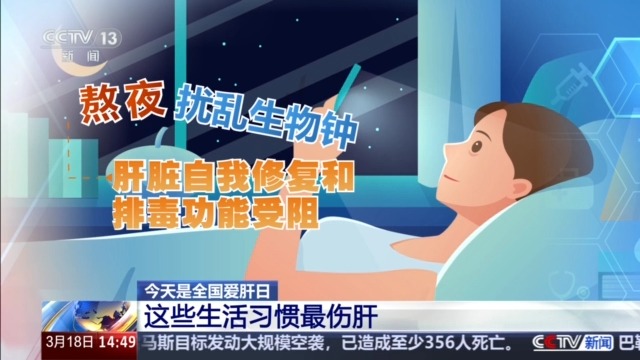 熬夜会扰乱生物钟,使肝脏的自我修复和排毒功能受阻。