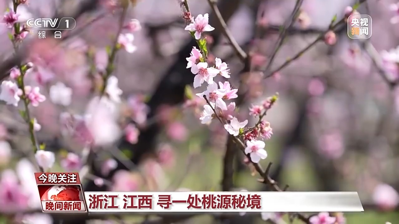 在江西吉安峡江县金坪民族乡,当地千亩桃花也争相绽放。枝头攒动的花朵汇成了一片流动的粉霞。