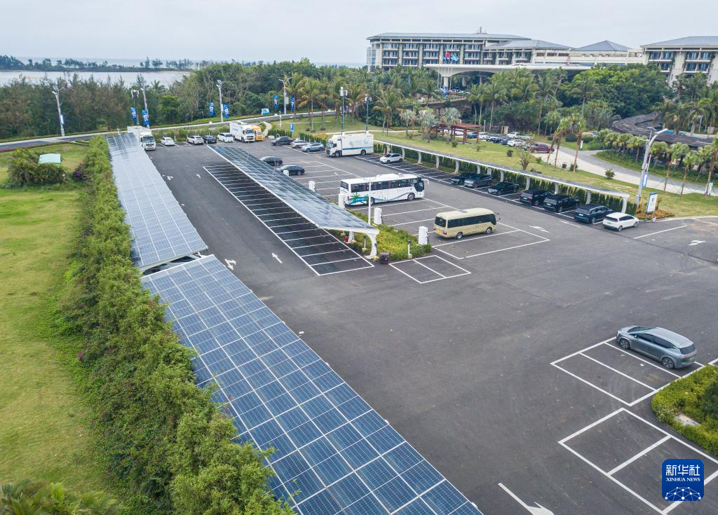在博鳌零碳示范区拍摄的建有光伏发电设备的停车场(无人机照片,3月16日摄)。