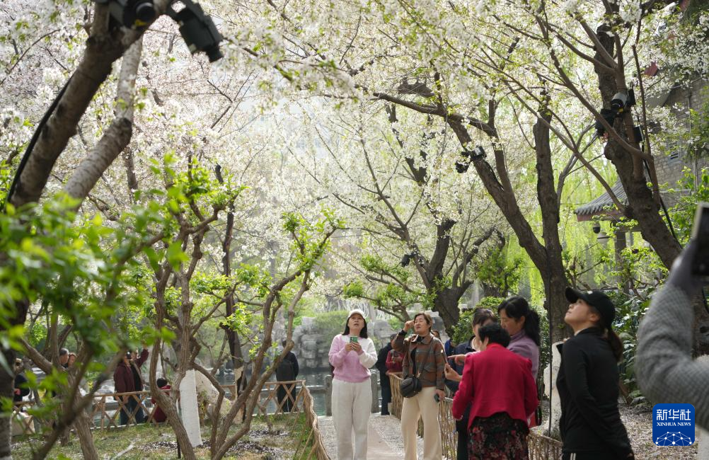 3月25日,人们在山东省济南五龙潭公园观赏樱花。