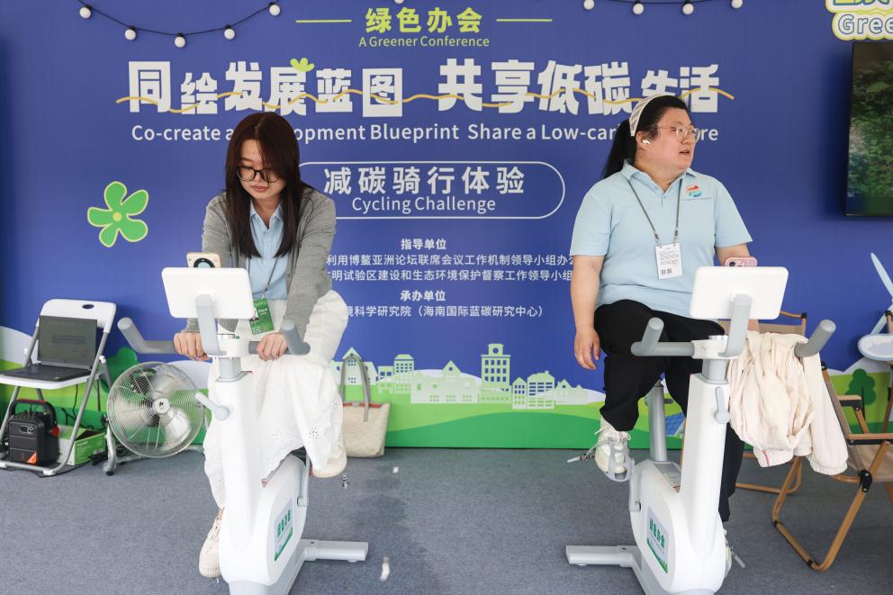 3月25日,参会人员在博鳌东屿岛文化公园内体验减碳骑行活动。新华社记者张丽芸 摄