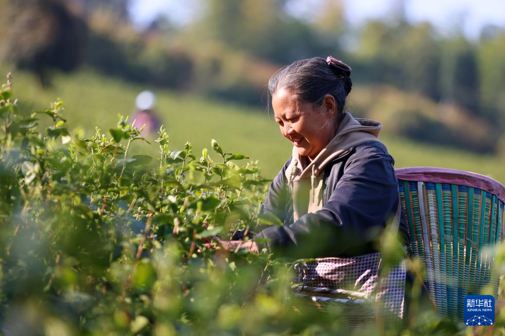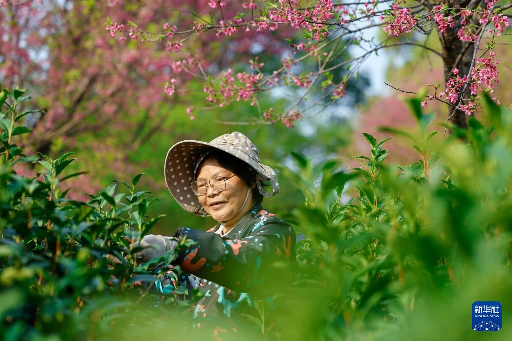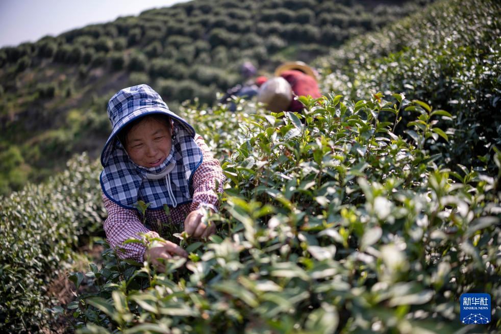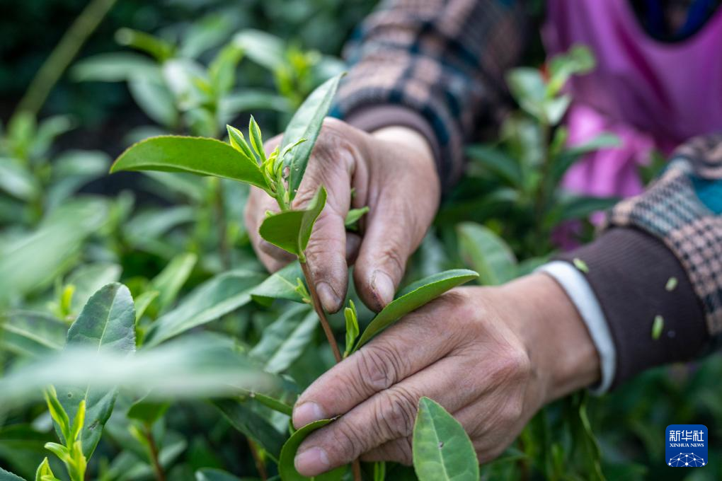 3月26日,茶农在贵州省遵义市正安县瑞溪镇桂花园茶园采茶。