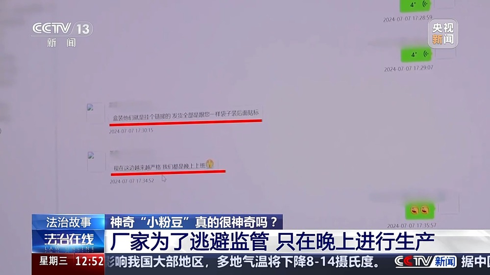 徐某和“小粉豆”产品生产厂家的聊天记录表明,双方对产品中添加了苄氟噻嗪成分的情况都非常清楚。厂家甚至提到,为了逃避监管,他们只在晚上进行生产。