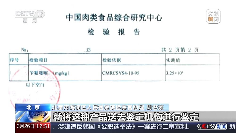 北京市海淀区人民检察院检察官助理 周世豪:她为了核实这种现象是如何发生的,就将这种产品送去鉴定机构进行鉴定,发现这个东西中含有这种苄氟噻嗪这种不应该添加在食品当中的药物成分。