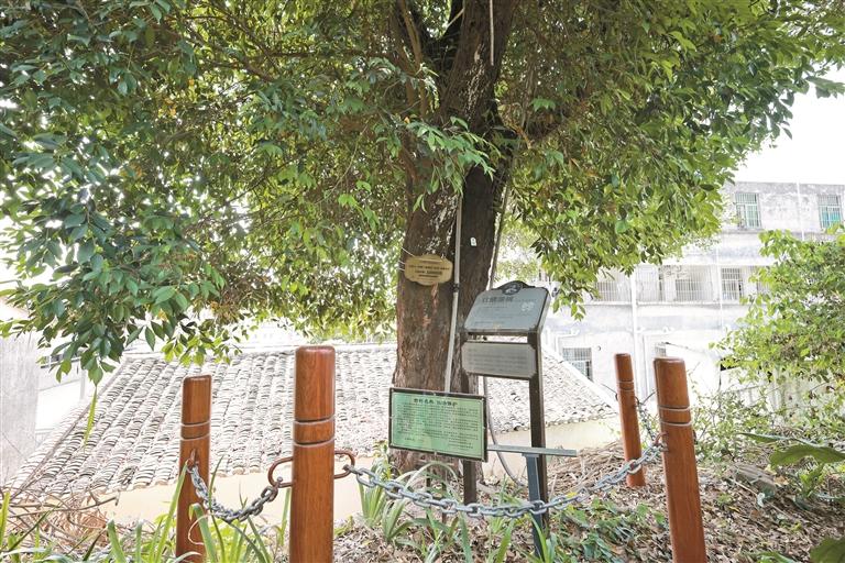 在这一批获得认捐的古树中,最年长的是生长在四和社区南木輋老村的香樟树,树龄216年,编号为44031105000200001,其树干粗壮,枝叶层层叠叠,翠绿的叶片在阳光下闪烁,整棵树郁郁葱葱,满是蓬勃生机。其次,是位于茜坑社区茜坑老村树龄176年的红鳞蒲桃,编号为44031105000200006。红鳞蒲桃是南方独具特色的红叶植物之一,有着“鸿运当头”的寓意,因此当地人对红鳞蒲桃情有独钟,茜坑老村后山有个古树群,完整保留着红鳞蒲桃等几十棵百年古树。在章阁社区,一棵有着104年树龄的荔枝树也被认捐,编号为44031105000100027。这棵古树在100多年前被村民在榕树旁种下,往后六七十年间硕果累累,近年虽挂果渐少,但居民对其爱护有加,定期为它修枝除虫。在现场,认捐单位深圳顺络电子股份有限公司代表围着古荔枝树走了几圈,看了又看,与古树合影留念:“我们企业绿化团队也会定期来养护、照料,与福城街道一起,好好呵护这棵岭南特色的古荔枝树。”