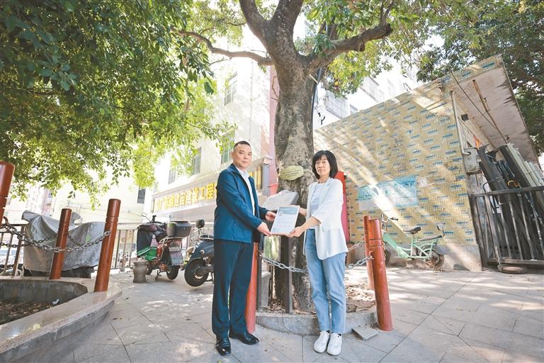 在“百千万工程”与绿美广东生态建设推进之际,福城街道积极响应省绿化委员会办公室“古树认捐·绿美有我”募捐活动,辖区3家爱心企业成功认捐古树,成为古树的3年“监护人”。昨日上午,福城街道林长制“古树认捐、绿美有我”授牌表彰仪式举行,福城街道副林长冉枫为中国水利水电第七工程局有限公司南方分公司、中建三局集团(深圳)有限公司、深圳顺络电子股份有限公司3家爱心企业授牌,开启政企社携手守护古树的新篇章。随后,3家企业也分别前往古树所在地,与古树“见面”。据介绍,捐赠资金将用于古树养护、乡村绿化、绿美广东示范点建设等工作。