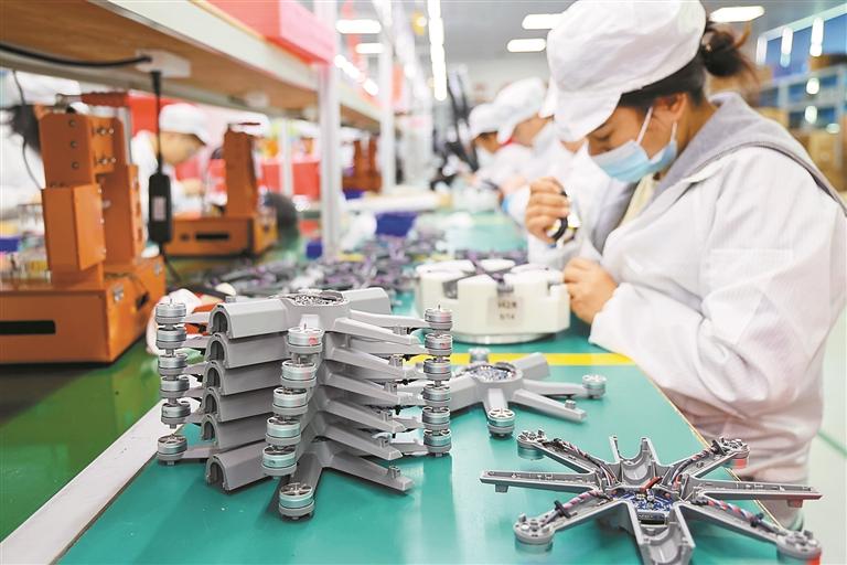 工人在位于龙华区的大漠大智控生产车间生产第四代无人机。