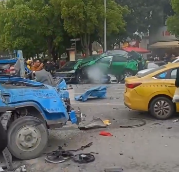 突发!一特斯拉失控撞花坛腾空飞起,落下后砸毁5辆车