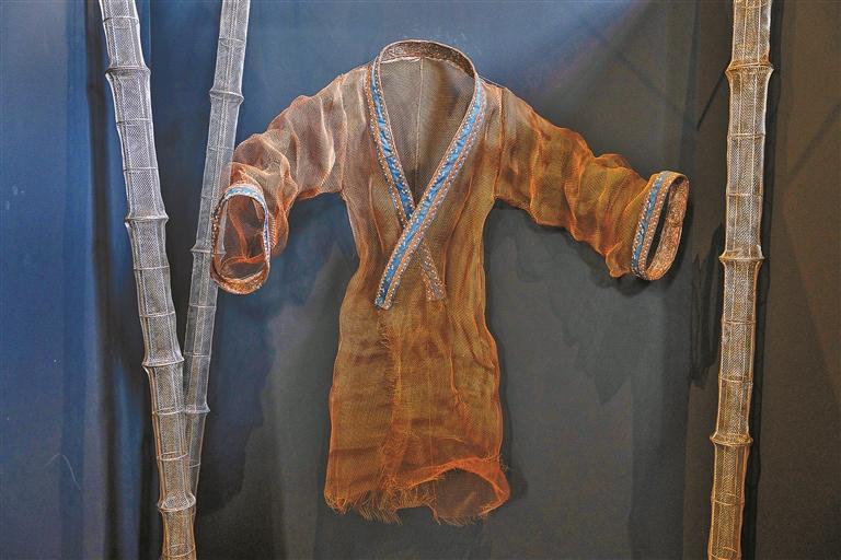生活时尚类包括11套艺之卉高定时装以及充满设计感的旋转平衡灯,实用美观兼具。除此之外,还有安顺苗数纱绣太阳纹对襟上衣、百褶裙等苗族非遗服饰以及多件家具展饰作品。其中素纱蝉衣曾获多项国内外设计大奖,是现代金属美学的典范。