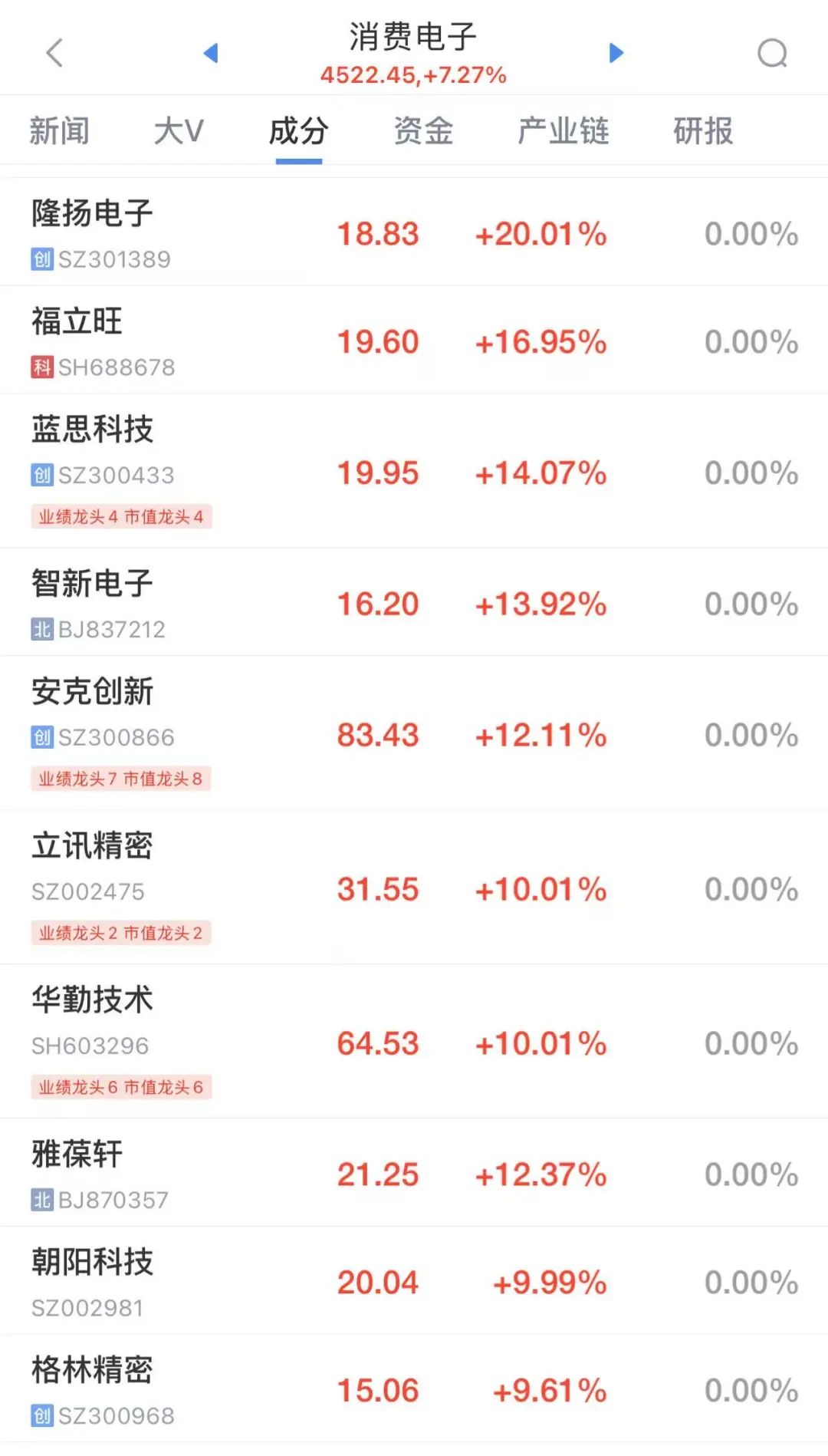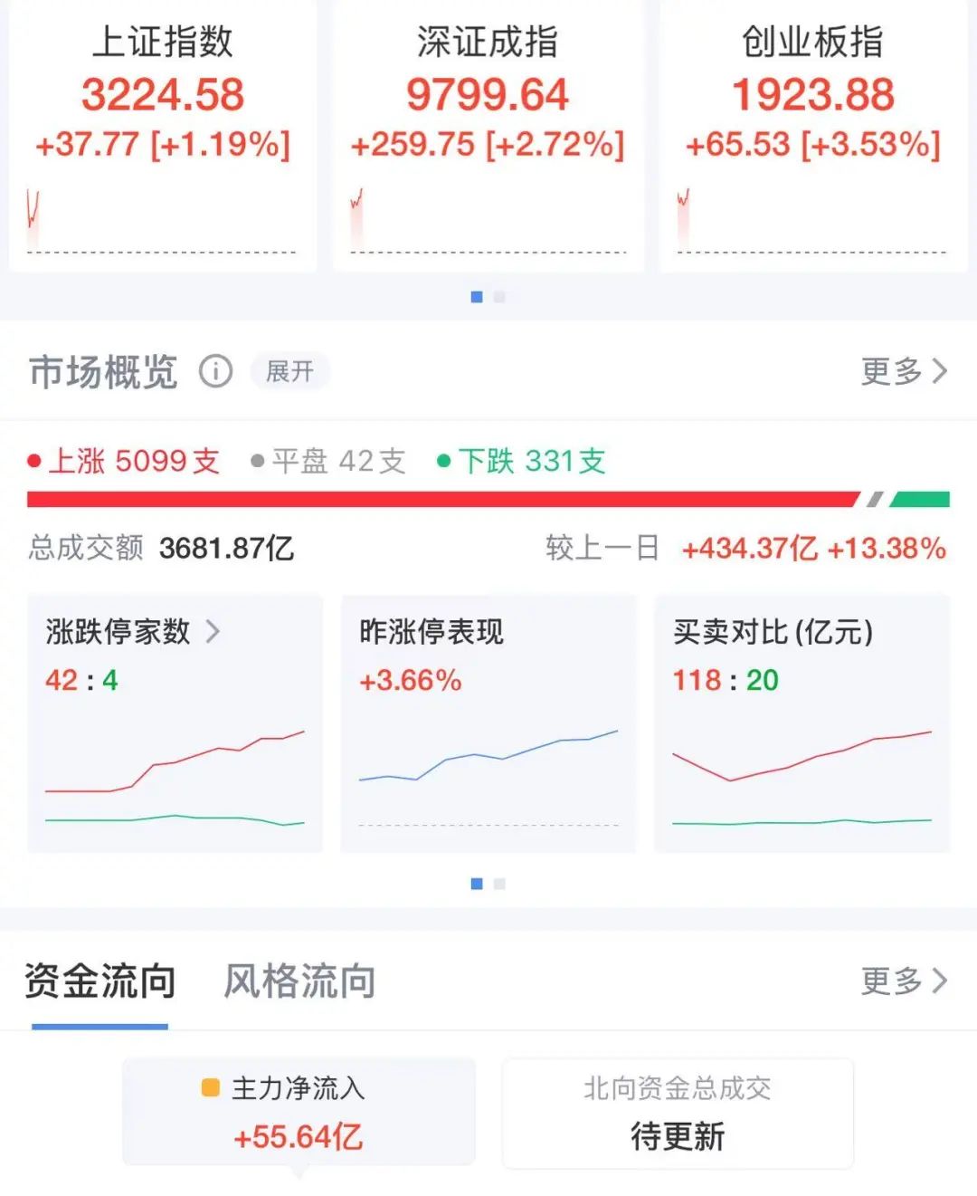 4月10日,A股开盘全线飘红,三大指数齐涨。截至发稿,沪指涨超1%,深成指数涨超2%,创业板指涨超3%。全市超5000股上涨,消费电子、算力等板块指数涨幅居前。