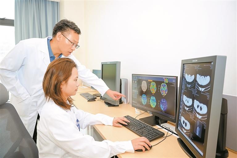 影像医学科医生使用AI医学影像智能处理系统观看报告。