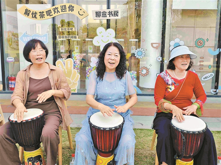 活动不仅聚焦鼓点教学,更融入即兴歌唱与轻快舞步。大家随着《苹果香》《女人花》等熟悉的旋律,一边击鼓一边轻声哼唱,有的还即兴摆动身体,在草坪上踏出简单的舞步。阳光、鼓点、欢笑声交织成温暖图景,不少路过的居民驻足微笑,感受银发族的活力。