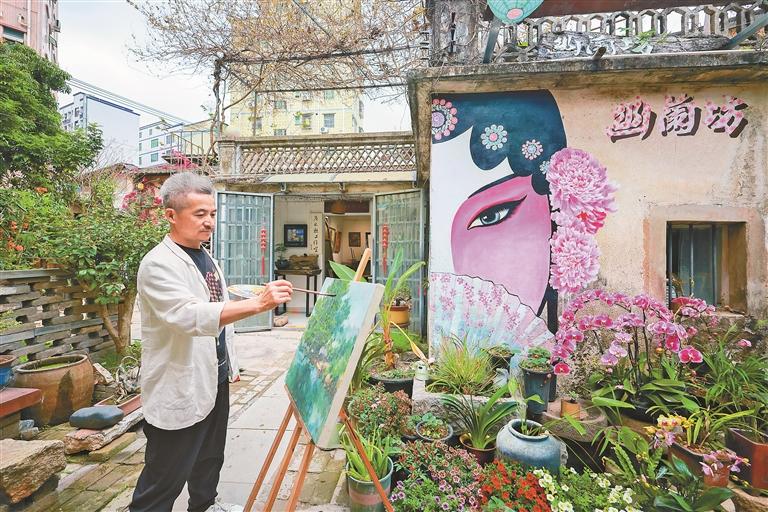 唐文标在上围艺术村幽兰坊艺术工作室进行创作。