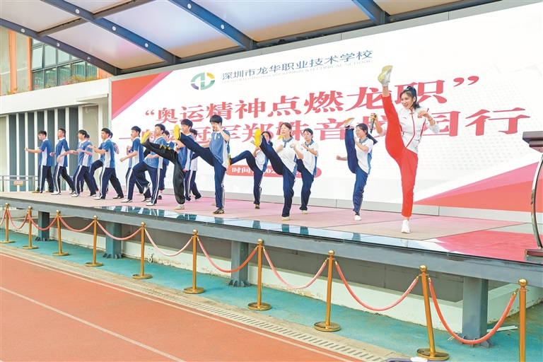 大课间时分,全校师生齐聚操场,举行了隆重的欢迎仪式。谢建鹏在致辞中表示,奥运精神与职业教育培养“大国工匠”、追求卓越的目标高度一致,在拼搏精神、抗压与创新、团队协作与规则意识等方面有着诸多共通之处。此次交流互动,既能传递奥运精神,也有助于工匠精神在学生心中扎根。