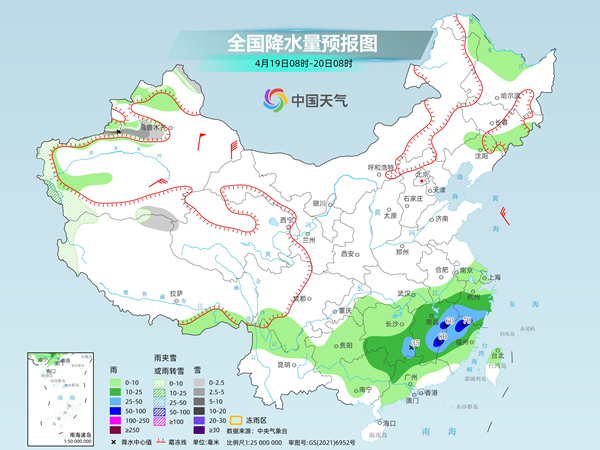 后天,新疆阿勒泰山区和沿天山西部及南疆西部山区、西藏西部等地部分地区有小雪或雨夹雪,其中,新疆沿天山地区西部等地部分地区有中到大雪。湖南南部、江西、安徽南部、浙江中南部、福建中北部、广东北部、广西北部等地部分地区有中到大雨,其中,江西东部、浙江南部、福建西北部等地部分地区有暴雨。