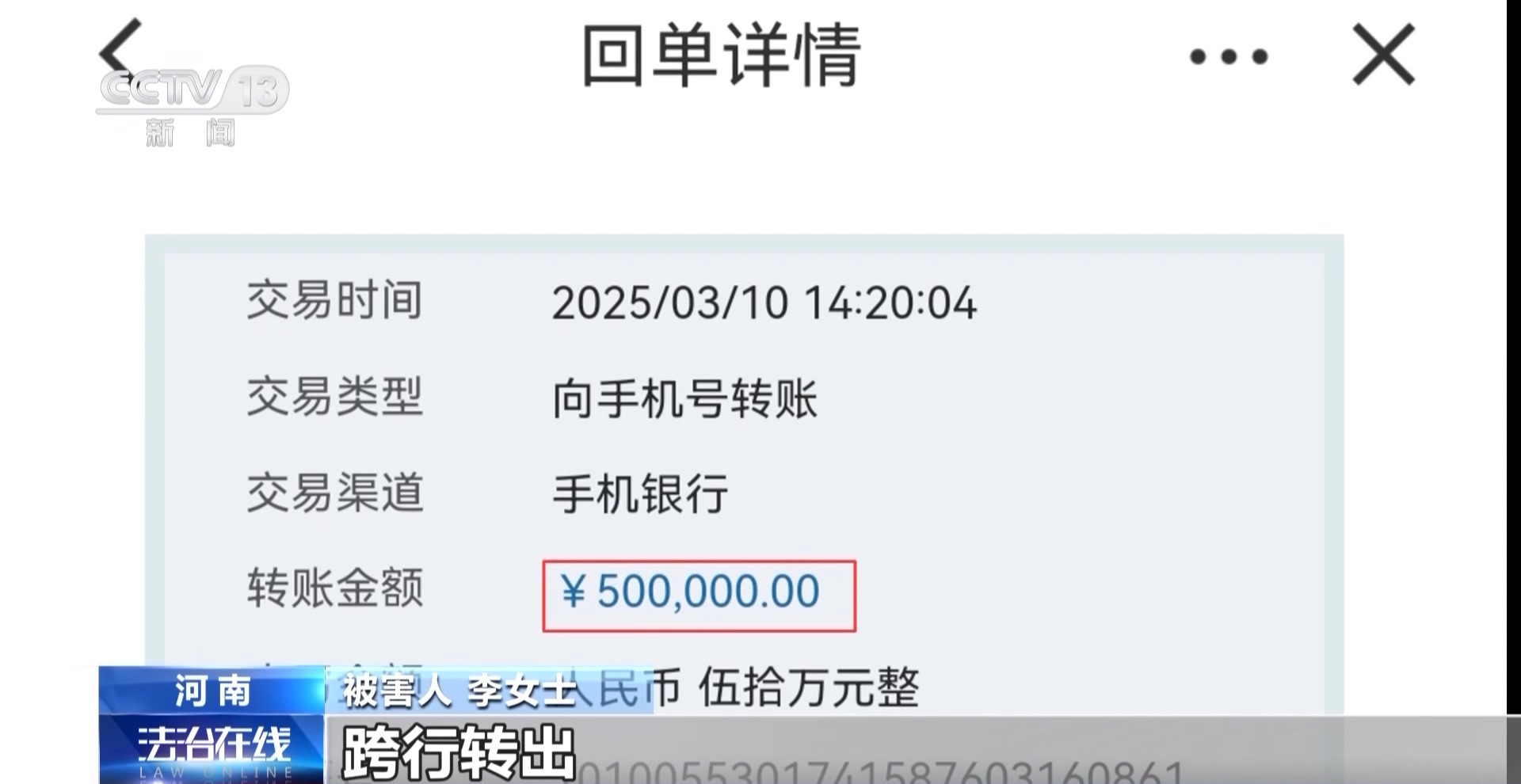 被害人 李女士:那时候心里面清楚,但是手就是抖的,我点开我的转账记录一看,跨行转出,一笔50万,一笔45万。