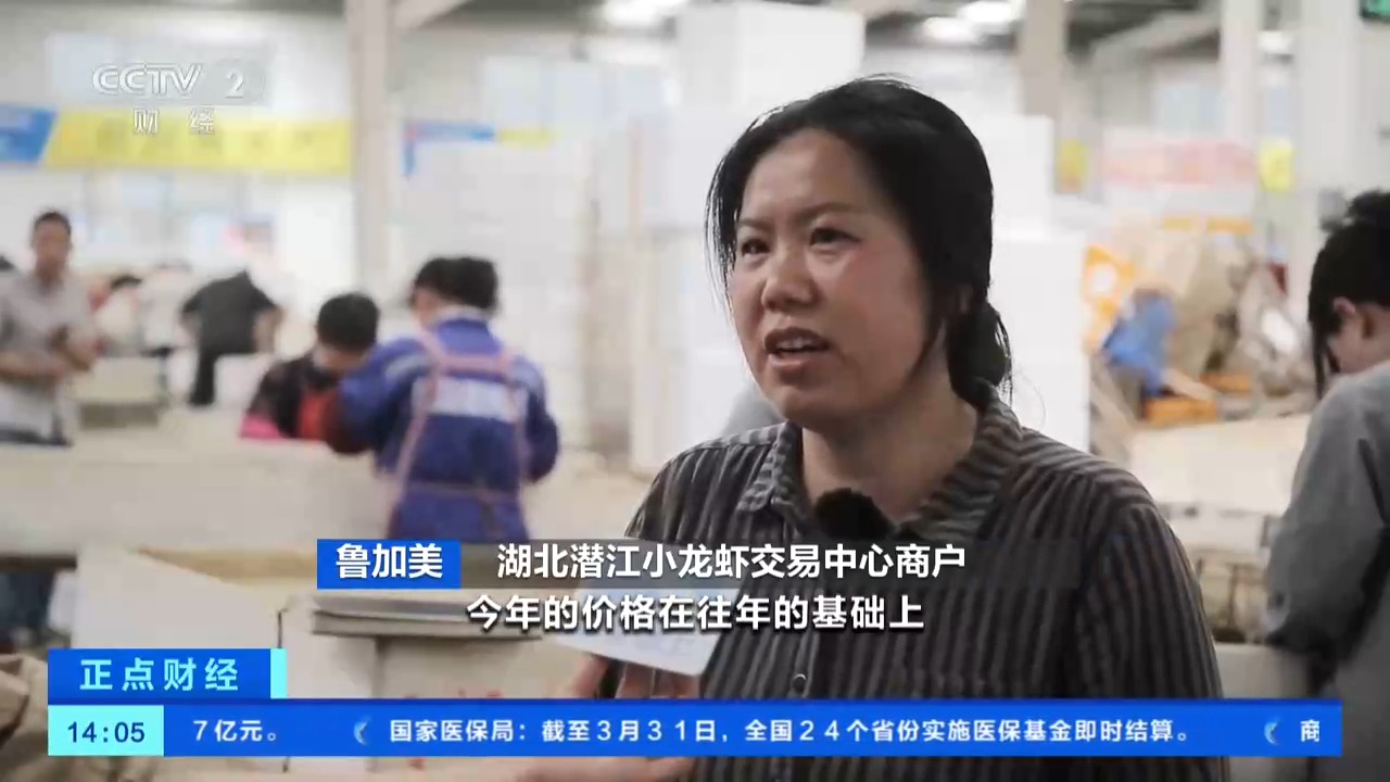 湖北潜江小龙虾交易中心商户 鲁加美:今年的价格在往年的基础上高3到4元每斤,主要是今年我们的品质有提升。