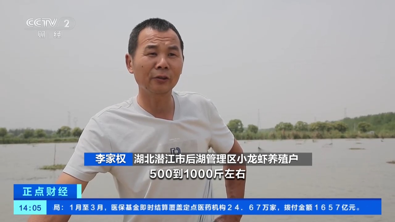 湖北潜江市后湖管理区小龙虾养殖户 李家权:我一天能够起到3000到4000斤。5月份的时候这个量还要升高500到1000斤左右。