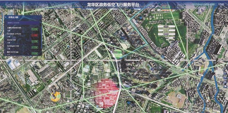 龙华区打造全区空域航线一张图,为政务无人机运营提供风险预警、路径优化和仿真模拟等功能。 (受访方供图)