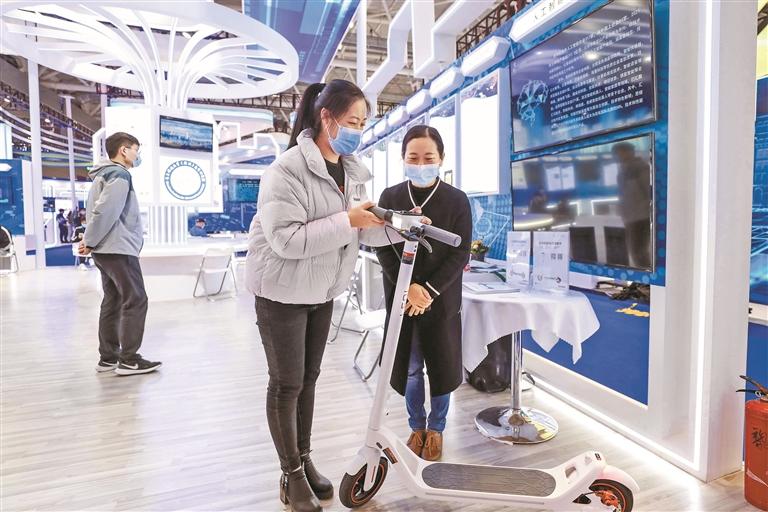 市民了解乐骑智能电动滑板车。 (资料图片)
