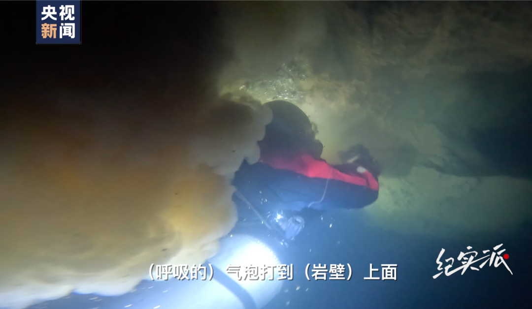小周回忆:“大概过了12个小时,我看到水下有一束特别亮的光,那个光都能泛到我脚下水域。我知道肯定是专业的搜救队,我赶紧拿潜水装备,用气瓶底部撞击出水口上方的岩壁。”但持续了一段时间,那个光源就消失了。