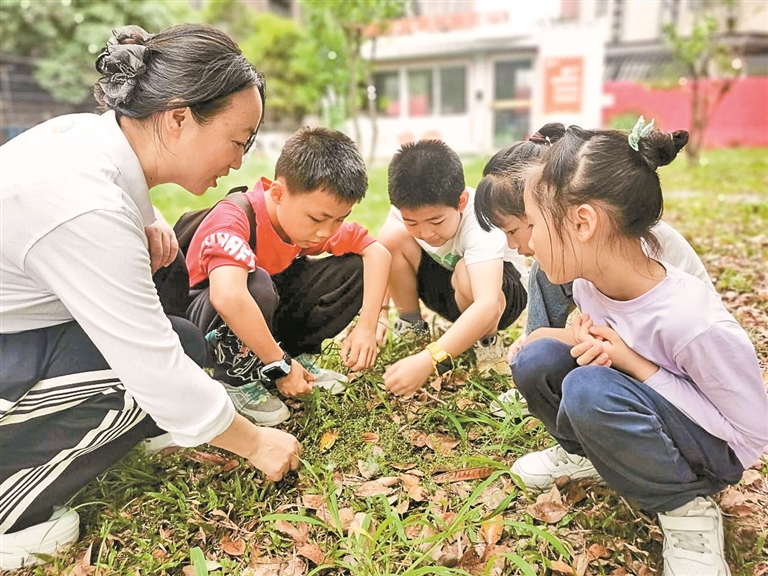 “阳光、水和生物链如何编织成生命之网?”在生物多样性主题课堂上,志愿者讲师以互动问答开启探索。孩子们用画笔勾勒“丛林与海底生态网”,在协作中理解自然万物环环相扣的依存关系;家长则通过“零废弃实践”投票互动,思考人类活动对生态的深远影响。活动还融入“自然观察探索”特色环节,行知实验小学的孩子们用树叶拼贴记录昆虫踪迹,龙华区外国语学校学生俯身触摸土壤,从微观视角感知生物多样性。
