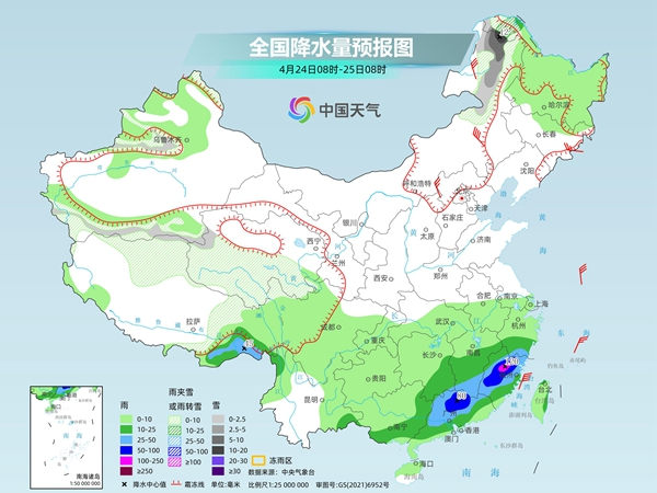 今起(4月24日)至周末,南方将持续多雨模式,华南部分地区累计降雨量较大,还伴有强对流天气,需防范持续性降水可能引发的次生灾害,建议公众及时关注预报预警信息,注意出行安全。同时,北方有冷空气“串场”,黄淮以北地区气温多起伏,需关注气温变化,及时增减衣物防感冒。