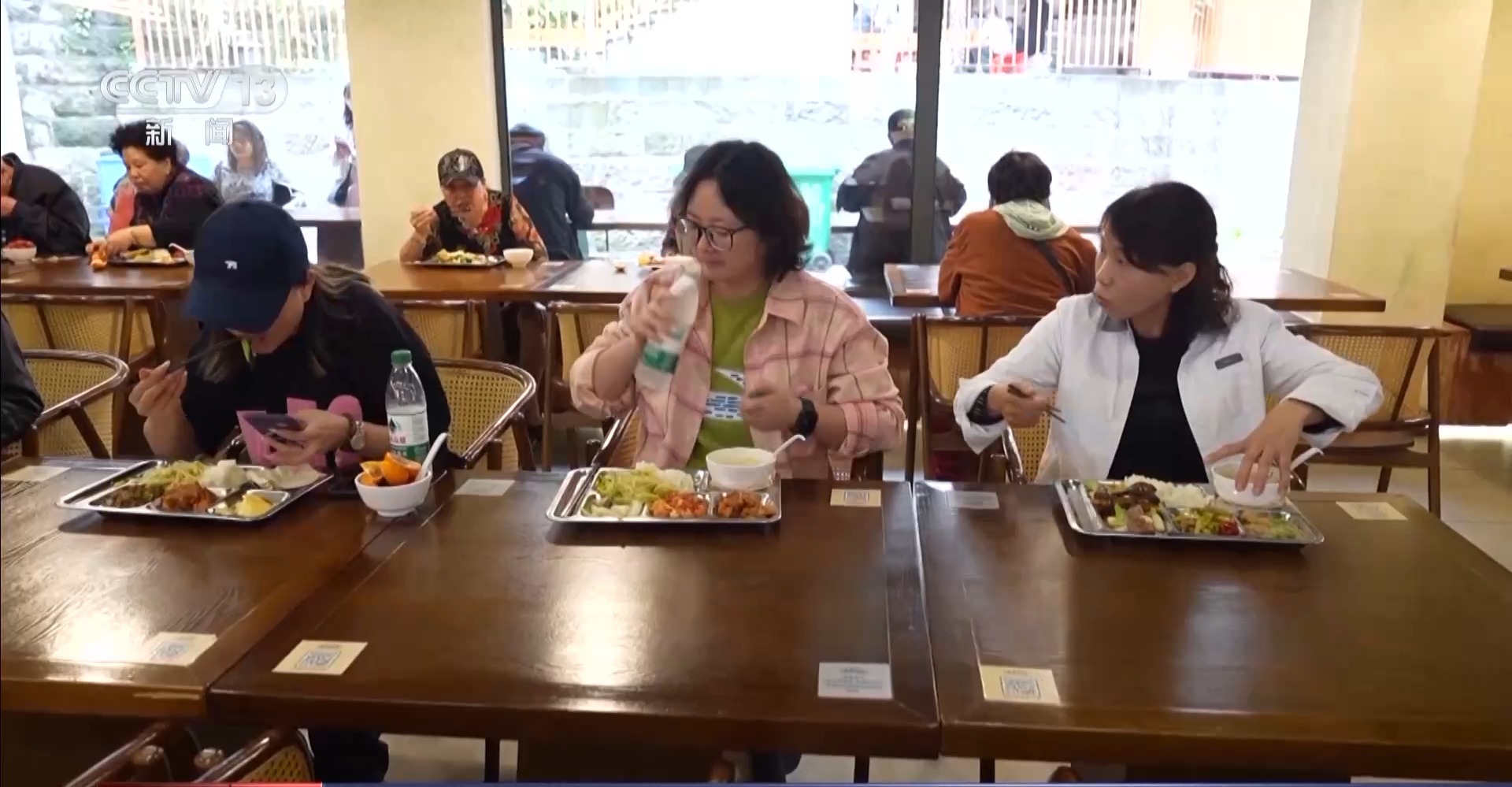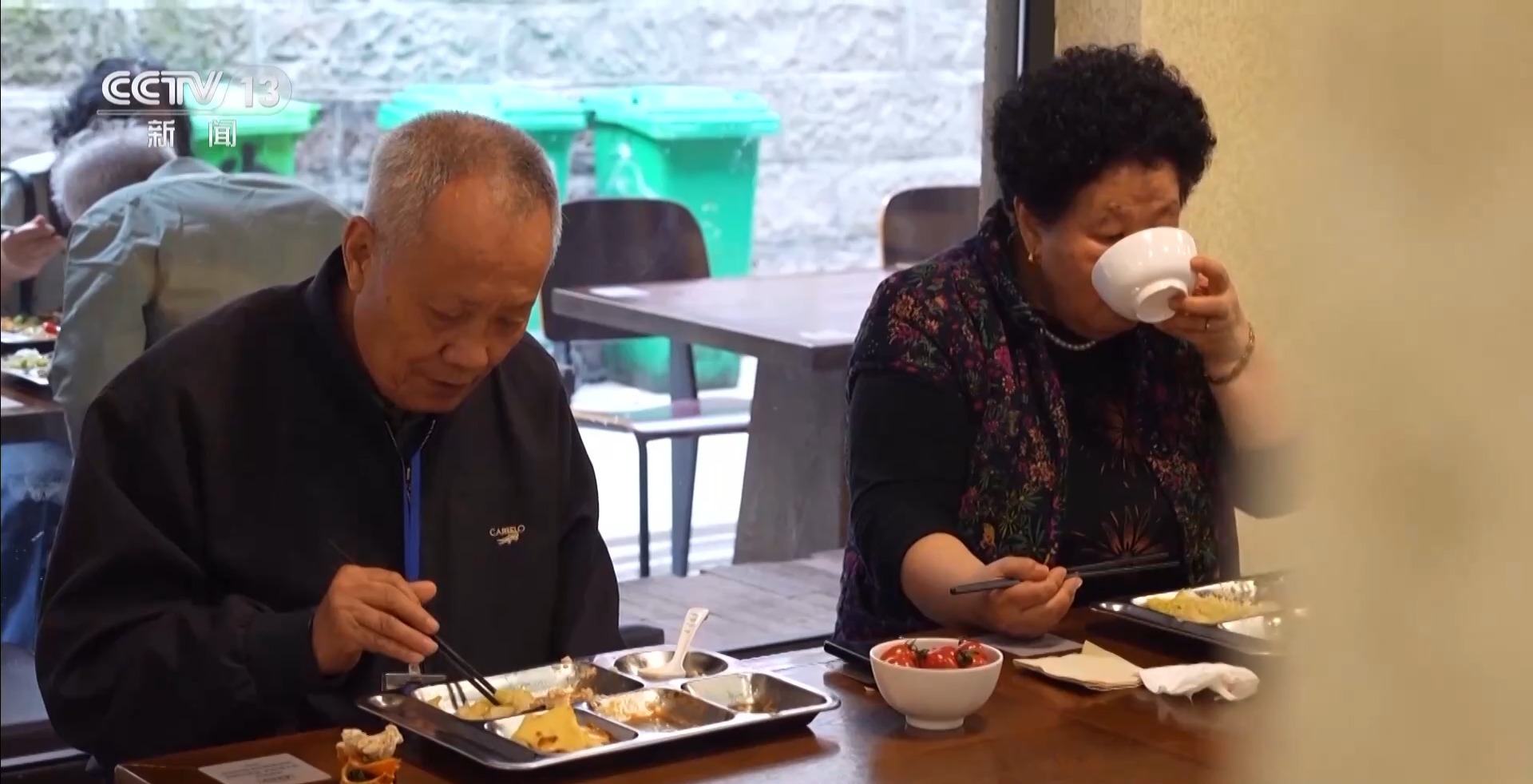 由于设施老化、环境堪忧,2022年初,被列为城市更新试点项目。当时,新开辟的居民广场,特意设计了这座社区食堂。在民主村,60岁以上老人有2400多人,超1/3处于空巢状态,做饭难是大家普遍反映的问题。除了把食堂建在家门口,遇到出门有困难的老人,志愿者们还会帮忙送餐上门。由于社区食堂越来越出名,本周二,还引来了一个外国记者团的关注。