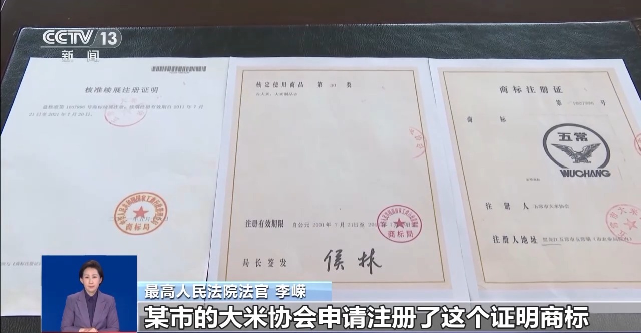 最高人民法院法官 李嵘:某市大米协会申请注册了这个证明商标,证明商标的注册人不得拒绝你使用。生产经营者要使用地理标志证明商标,你有证据证明产地来源自特定的产地,你又能够举证证明它达到了特定的品质要求,你就可以去申请使用。