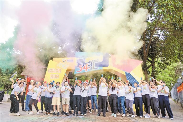 龙华新闻讯(记者 黄晓华 通讯员 钟祥丽 张雪妮/文 记者 陈建华/图)在五四青年节来临之际,福城街道九龙山社区“九龙山声音”项目青年彩虹跑在绿道活力开跑。55名社区青年身着轻便运动装,以活力奔跑为笔,以缤纷彩粉为墨,在绿道上绘就一幅绚丽的青春画卷,为节日献上最热烈的青春贺礼。