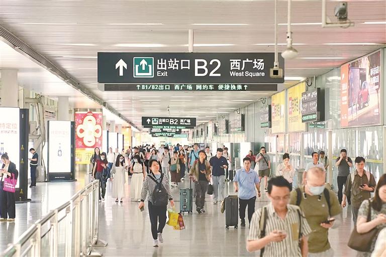 龙华新闻讯(记者 王雪敏/文 蔡维泽/图)近日,记者从深圳北站枢纽获悉,“五一”假日期间,4月30日和5月1日,连续两日刷新单日客流历史纪录。其中4月30日客流量达117.36万人次,同比增长13.91%;5月1日客流量125.14万人次,同比增长19.95%,两日数据均创开站以来最高纪录。