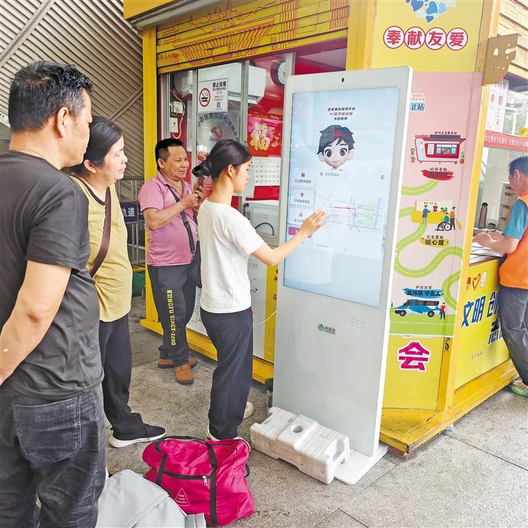 “五一”期间,民治街道开发了“民小智”AI数字人系统,并在深圳北站A2出站口设置了智能终端机。旅客可通过现场智能终端上的系统查看深圳北站整体详细地图。该系统还以A2出站口为基点,制定了前往出租车场站、地铁站、网约车场站等各主要功能区,前往缤果空间、维也纳酒店等各主要服务区以及前往周边民塘路、致远中路等主要道路的路线,旅客可根据路线快速找到目的地。同时,旅客还可以通过语音与“民小智”数字人进行互动,告知目的地后,系统可通过语音播报提供路线指引。该系统投入使用以来,受到了广大旅客的好评。现场旅客表示该系统通过智能化的功能设计与人性化的服务体验,有效提升了旅客出行的便利性与舒适度,切实解决了旅客出行不便问题。