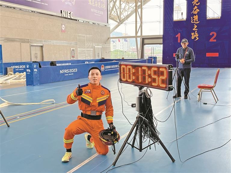 黄攀达参加消防技能比武。