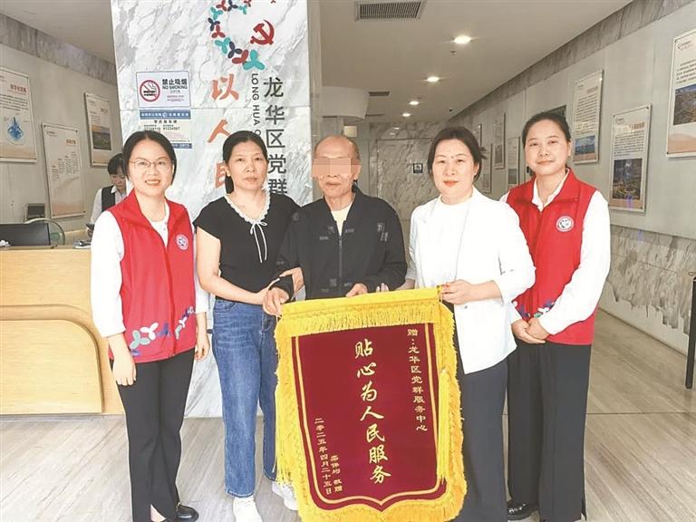 “叔叔,您先坐下来,喝口水,慢慢说……”日前,龙华区党群服务中心上演了一场温情接力。一位患帕金森和阿尔茨海默病的老人颤抖着走进中心求助,工作人员用耐心和爱心化解了他的不安,更让匆匆赶来的家属红了眼眶。4月28日,受助老人栾叔叔在家人的陪伴下,特意送来一面锦旗,表达心中的感谢。