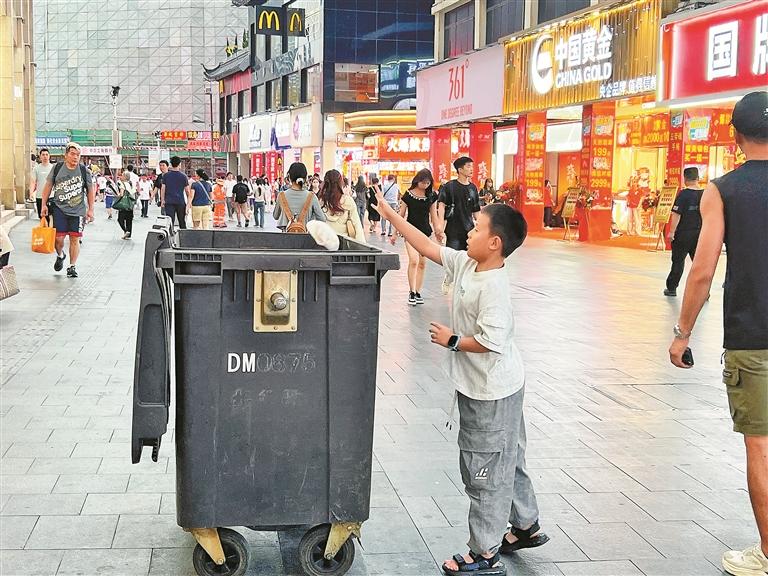 小朋友将垃圾丢到垃圾桶。深圳晚报记者 雷海燕 摄