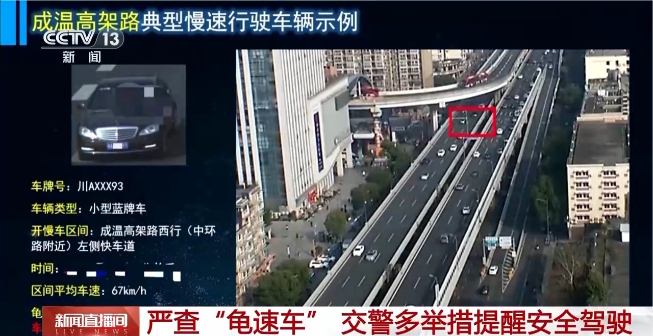 成都市公安局交通管理局科信处保障科科长 徐海丰:如果“龟速”行驶车辆的驾驶人有分心驾驶行为,车辆自身会有对前车追尾的风险,甚至在行驶过程中不自觉地偏移当前车道,对后车造成极大的交通安全隐患。