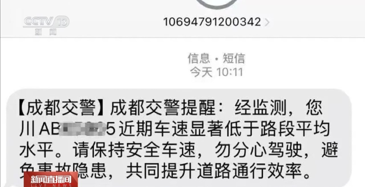 一旦完成认定,交警会及时通过LED诱导屏实时提醒。在一周内多次被判定为“龟速车”的,交警还会通过短信平台,精准向车辆驾驶人发送交通提示短信,提示驾驶人保持安全车速行驶。