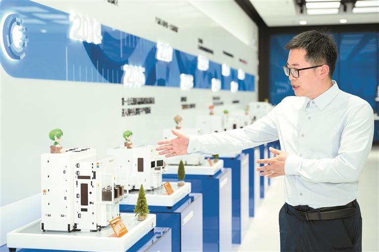 黄有为在中科飞测展厅进行产品介绍。