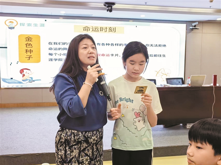 龙华新闻讯(记者 宋彪 通讯员 杨玲/文 记者 陈建华/图)为帮助辖区家庭提前认知学业规划的重要性,近日,观湖街道妇联、观湖街道家庭教育指导服务中心开展“金色种子”初中生涯规划体验营活动,通过沉浸式角色扮演,家长与孩子共同“穿越”至初中三年,直面学习压力、人际困扰、电子产品诱惑等现实挑战,在抉择与成长中领悟规划的力量。